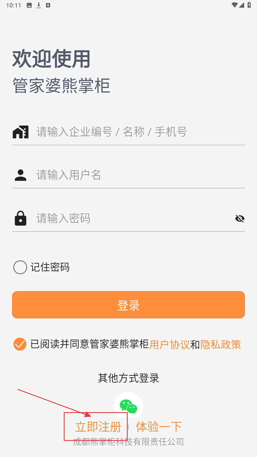 1、打开管家婆熊掌柜登录页,点击【立即注册】,进入用户注册流程。
