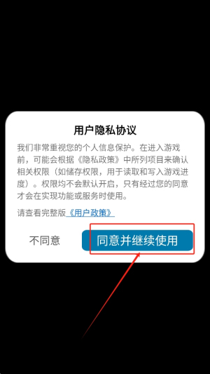 1、同意隐私协议:阅读用户隐私协议后,点击“同意并继续使用”以接受条款并继续。