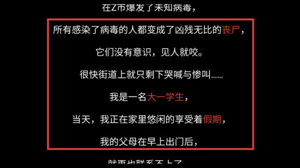 1、了解剧情设定,明确身处丧尸爆发环境,首要任务是保障自身安全。
