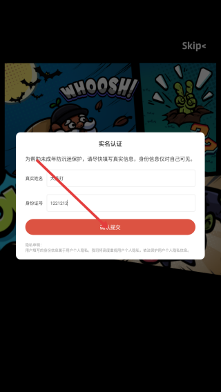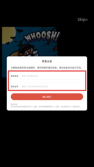 2、输入真实姓名和身份证号码。