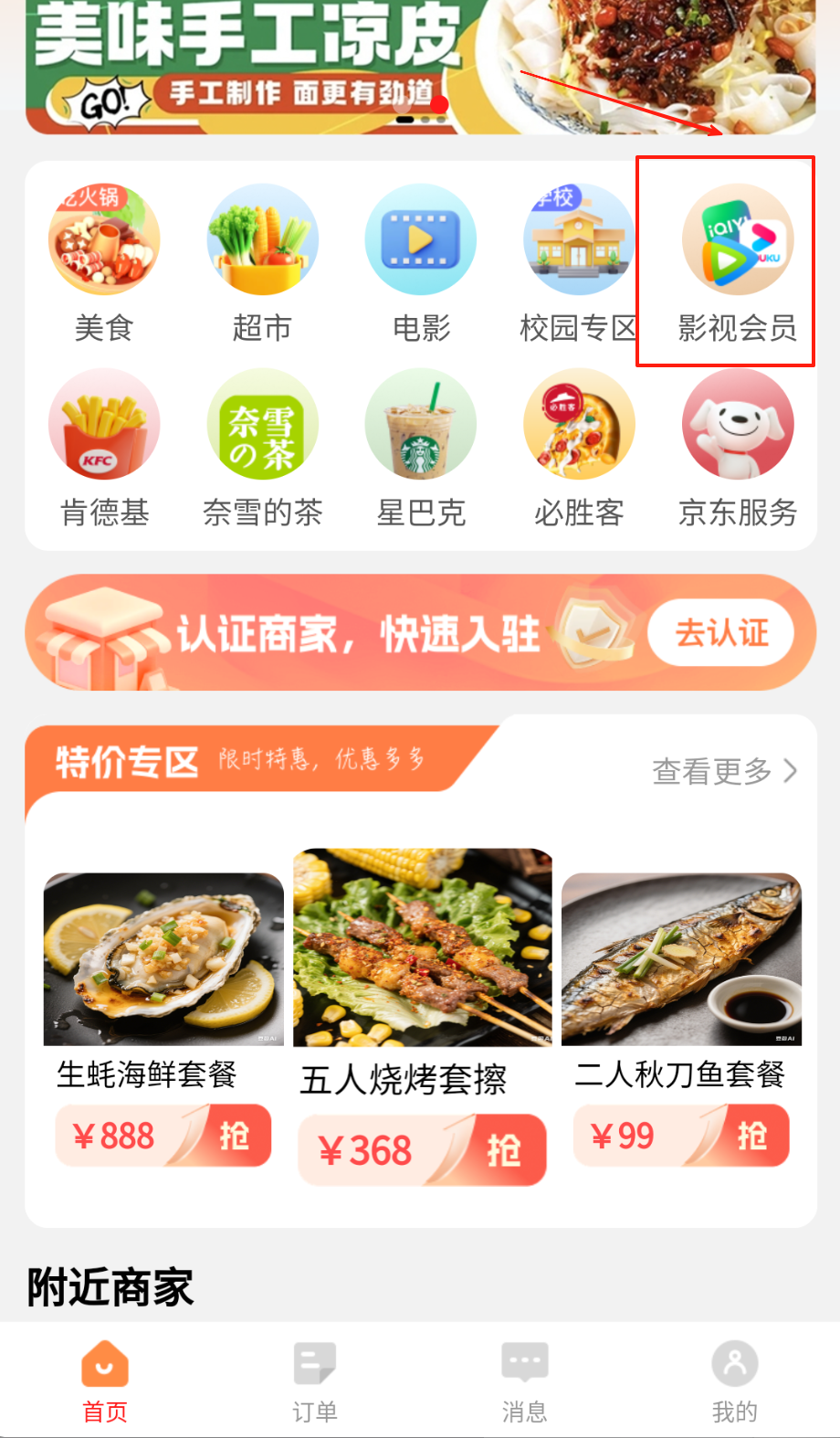 1、首页点"附近特惠"筛选3公里内商家,比价标签显示同类套餐差价,收藏店铺新客立减8元弹窗提醒哦。