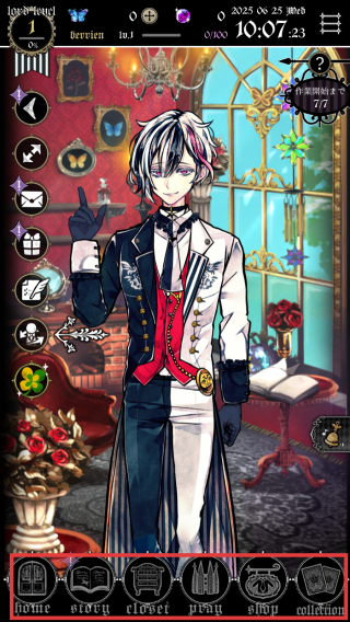 1、熟悉界面,利用左侧功能按钮探索游戏。如点击“story”了解剧情,“gift”赠送礼物提升角色好感度,逐步解锁更多剧情和玩法。
