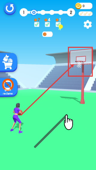 3、多尝试不同投篮角度和力度,熟练掌握操作技巧,以更高效率通关,获取更多奖励,不断挑战更高关卡。