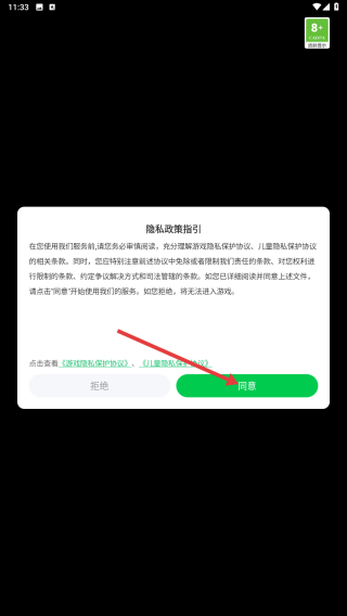 1、进入游戏,点击【同意】。