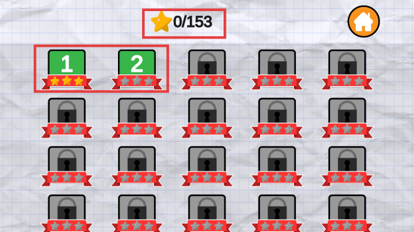1、在关卡选择界面,可看到关卡进度和总星数目标(如0/153),优先选择已解锁的关卡(如关卡1、2)开始游戏。