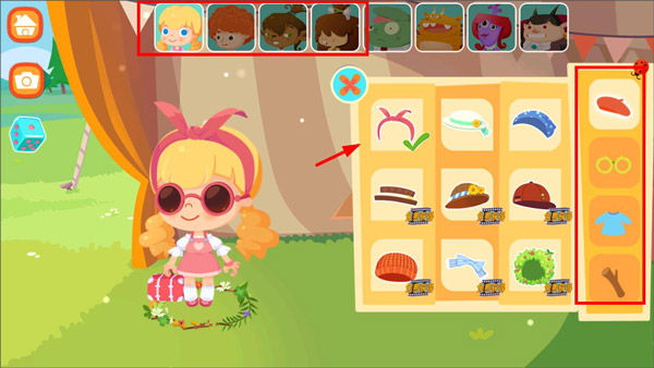 2、场景搭建好后,进入角色和装扮环节。可从角色选项中选择喜欢的角色,再从装扮物品栏(帽子、眼镜等)中挑选合适饰品为角色装扮。
