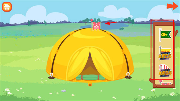 3、完成装扮后,可继续探索游戏其他功能,如安置不同的旗帜装饰帐篷,充分体验游戏的趣味性和创造性。