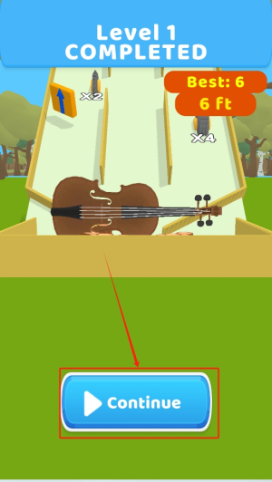 3、完成关卡:成功击中所有目标后,点击“Continue”按钮,查看成绩并进入下一关。