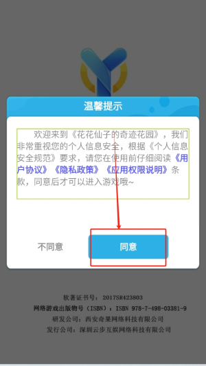 1、同意协议:在游戏开始前,点击“同意”按钮以接受《用户协议》、《隐私政策》和《应用权限说明》。