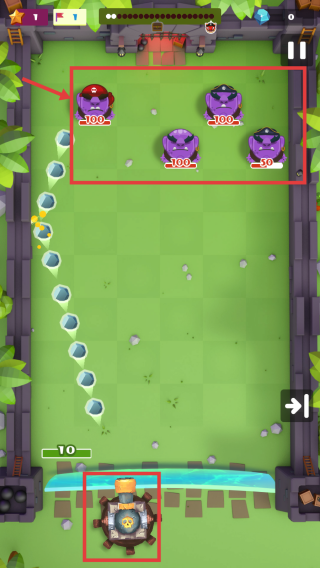 1、游戏开始,了解防御塔(如底部的炮台)攻击方式和范围,观察怪物出现位置和血量条。优先攻击血量高或靠近奖励标识的怪物。