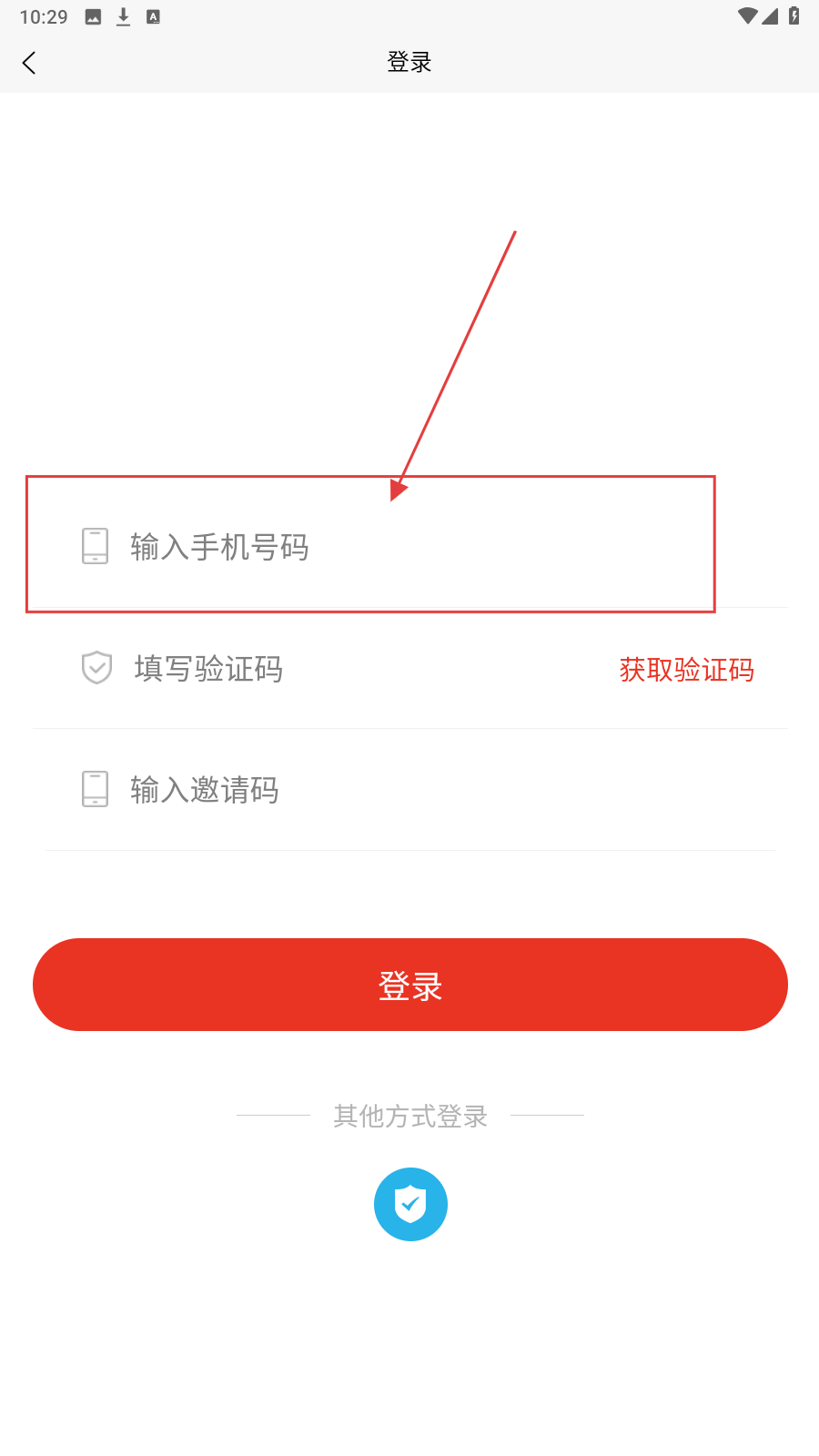 1、打开应用登录页,在“输入手机号码”框填写手机号。