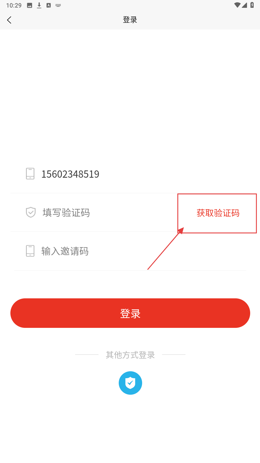 2、点击【获取验证码】,收到后填写验证码,按需填邀请码。