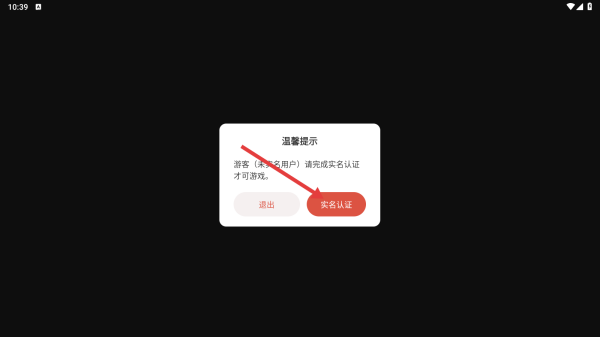 1、进入游戏,点击【实名认证】。