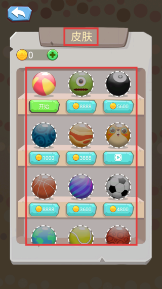 3、积累金币后,进入“皮肤”界面,根据喜好和金币数量解锁不同造型的游戏球皮肤,增添游戏乐趣。同时,挑战更多关卡。