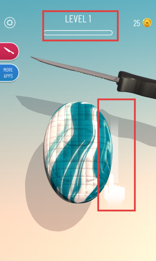 1、进入游戏关卡(LEVEL1),按屏幕提示进行切割操作,完成关卡任务,填充关卡进度条。