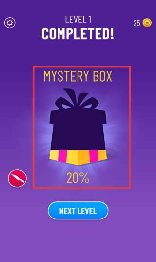 3、每次完成关卡还会出现神秘盒子奖励,虽当前显示20%,可能随游戏进程解锁更多奖励内容。持续完成关卡,获取金币和奖励。