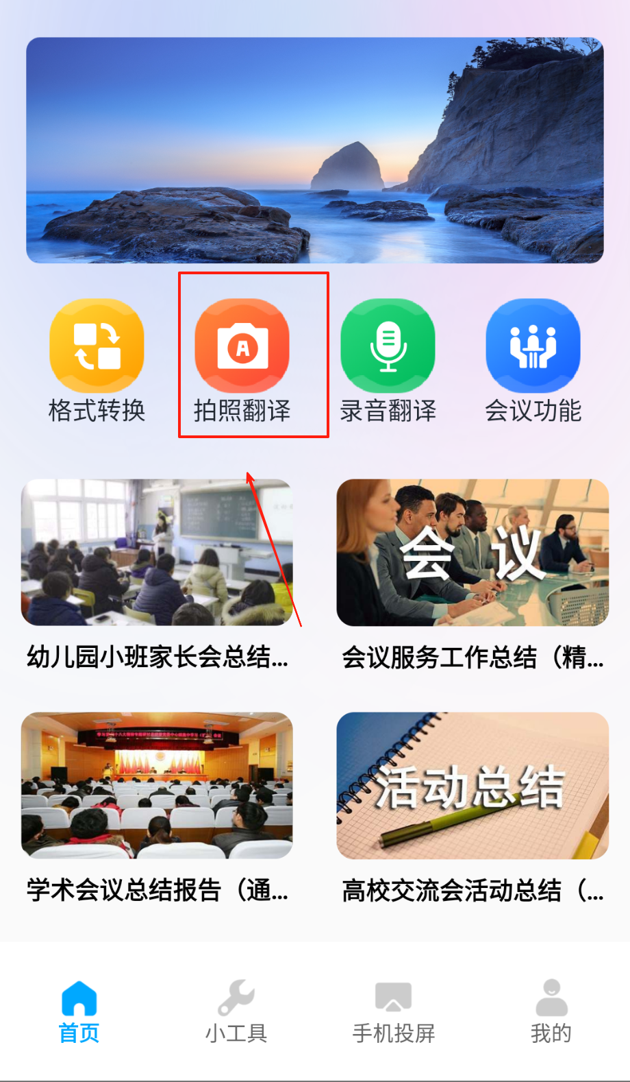 1、点拍照翻译对准外文菜单,AI实时叠加双语字幕,生僻词自动标注文化背景注释,会议模式同步转写发言内容哦。