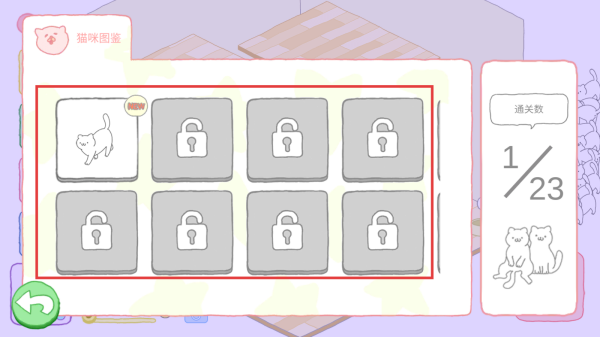 3、关注“猫咪图鉴”,随着游戏进程解锁新猫咪,收集不同猫咪丰富图鉴,享受养成乐趣,持续完成任务、通关关卡,解锁更多游戏内容。