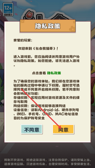 1、进入游戏,点击【同意】。
