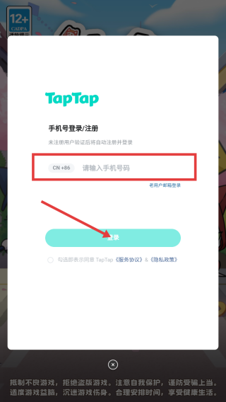 2、输入手机号码,点击【登录】。获取验证码。