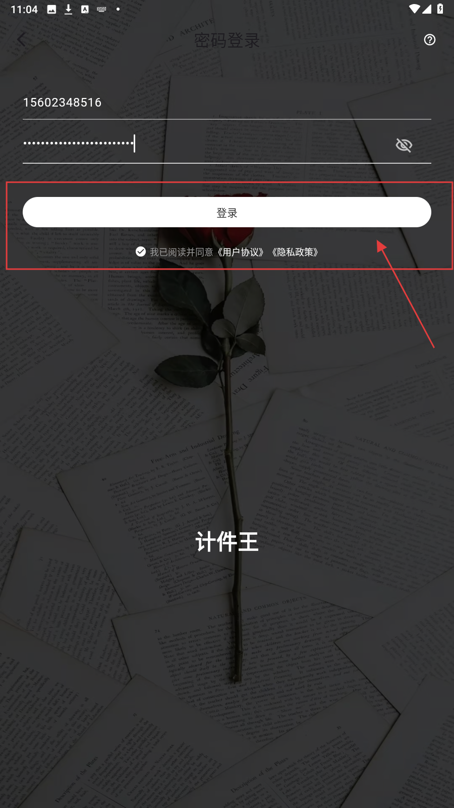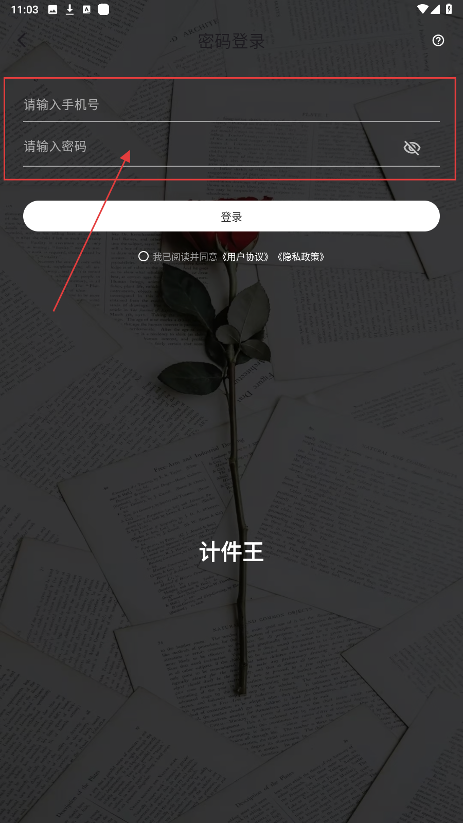 2、选【密码登录】,在“请输入手机号”“请输入密码”栏填信息,勾选协议。
