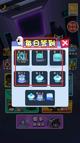1、每日登录游戏,点击“每日签到”领取对应天数奖励(如第一天可领特定道具),积累资源助力游戏进程。