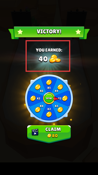 2、战斗胜利后,查看奖励(如40金币),可通过幸运转盘获取额外金币奖励。积累金币用于后续升级或解锁内容。