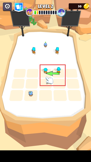 3、进入新关卡,留意对手分布,合理规划战斗策略。可以把相同的角色合成更强的角色。