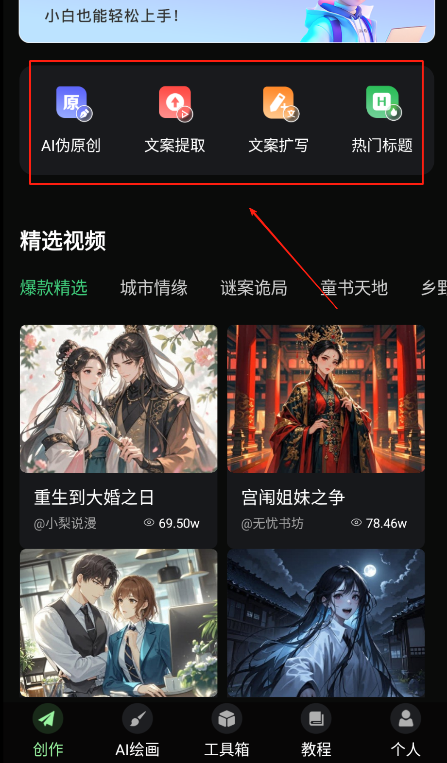 2、智能工具箱:AI配音含方言主播声线库,字幕动画匹配语速节奏,智能避坑检测敏感内容啦。