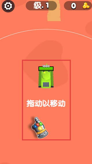 1、游戏开始,根据“拖动以移动”提示,操控绿色坦克移动,攻击敌人获取金币,注意坦克生命值(初始1000)。