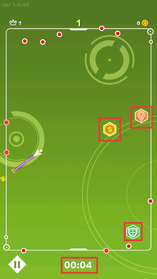 1、操控游戏角色在绿色场地中移动,收集金币和技能道具,提升自身能力,注意在倒计时结束前完成关卡目标。