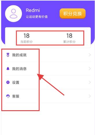 1、进入个人页,查看账号,当前/累计积分18,点击【我的成就】等(我的消息、设置、客服),进入对应功能。