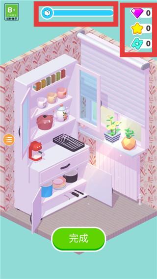 3、完成物品整理后,点击“完成”按钮。尽量在规定时间内完成任务,以获取更多奖励,提升星星等级,解锁新场景和功能,推进游戏进程。