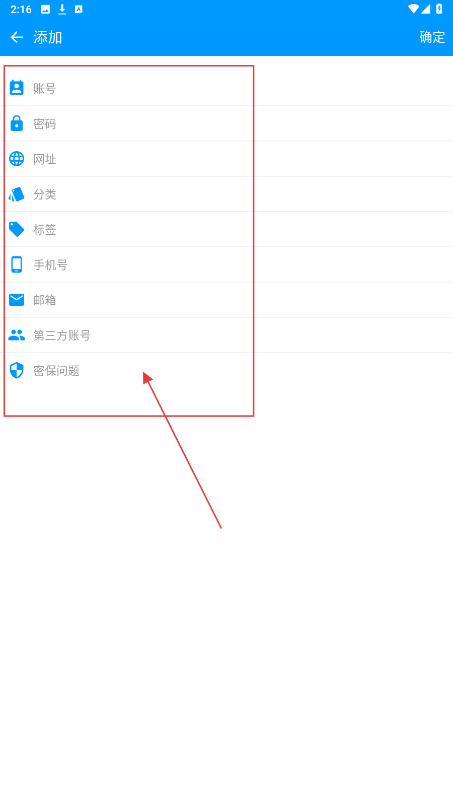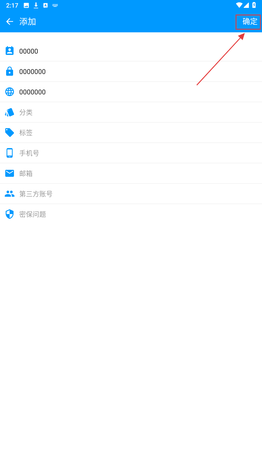 3、填完信息后,点击右上角【确定】,完成密码信息添加操作。