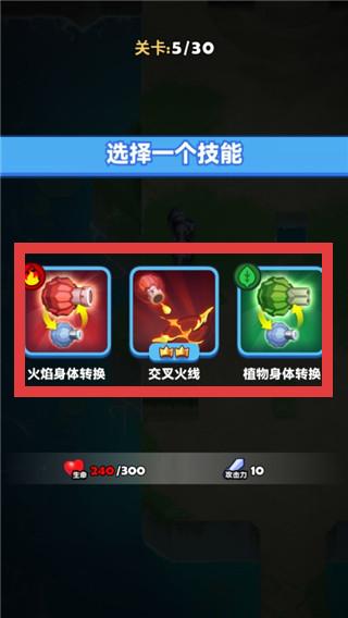 3、到达特定关卡,出现技能选择界面,根据战斗需求和敌人特点,合理选择技能,增强角色战斗能力,顺利通关,逐步挑战更高关卡。