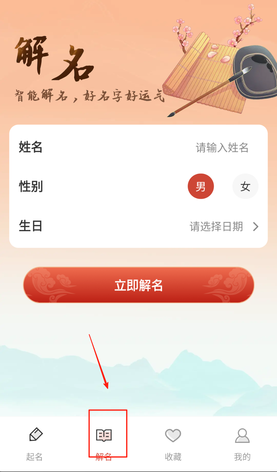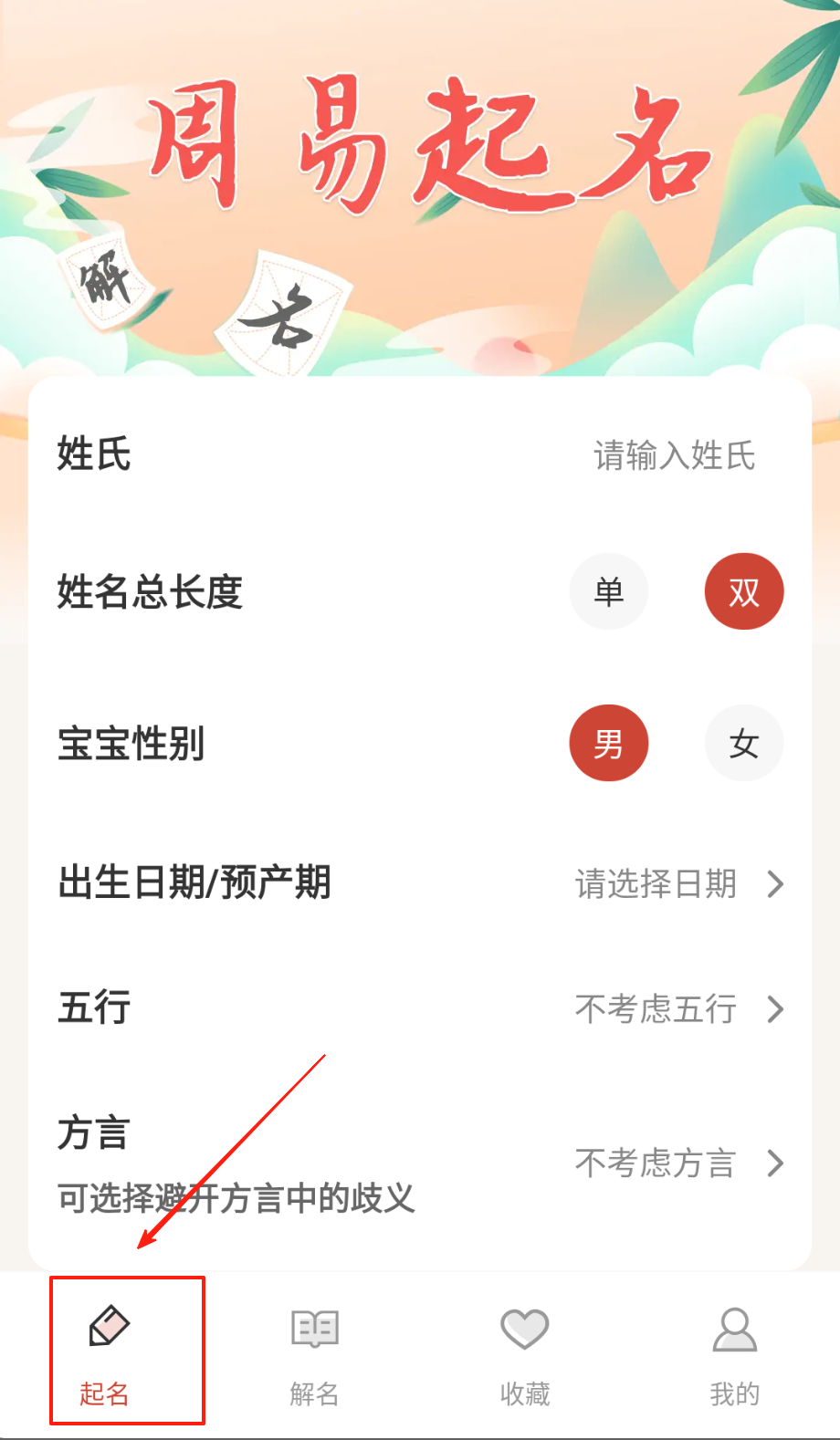 1、输入页填写宝宝姓氏、性别及生辰八字,系统自动分析五行强弱并用色块可视化,生肖冲突字根实时预警标注禁用提示哦。