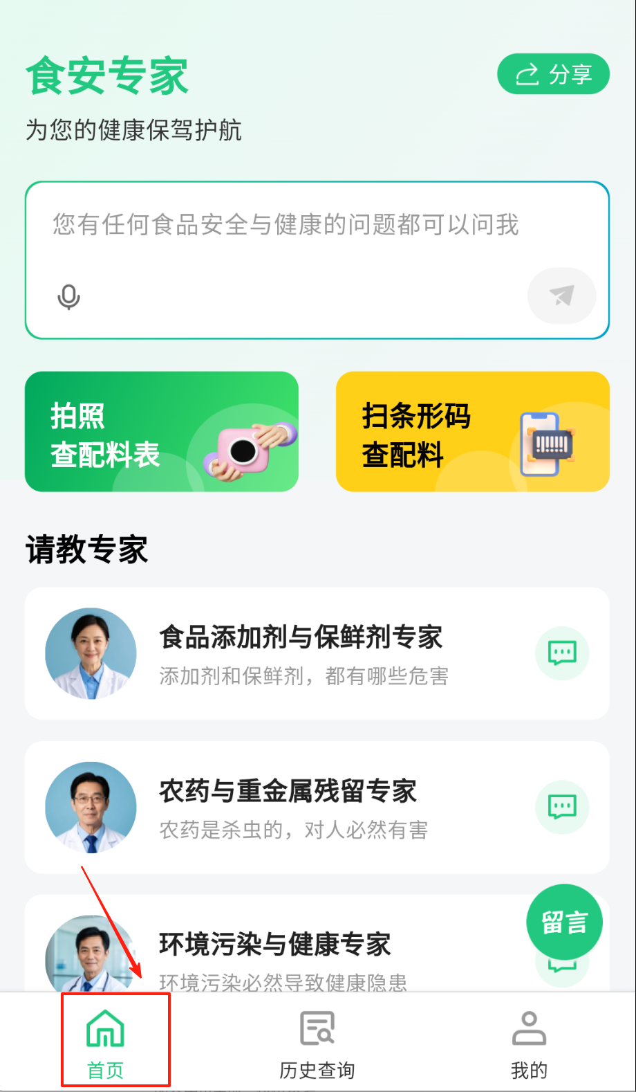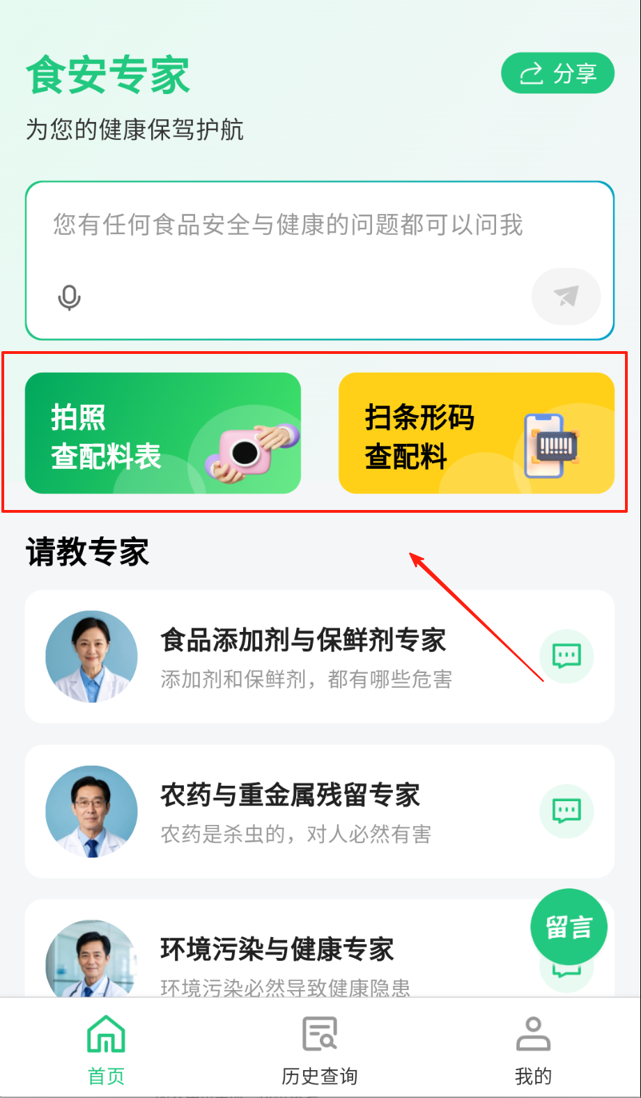 1、首页拍食品包装或扫条形码,AI自动识别防腐剂甜味剂成分,红黄绿三色标注风险等级,同类产品健康评分对比直观显示哦。