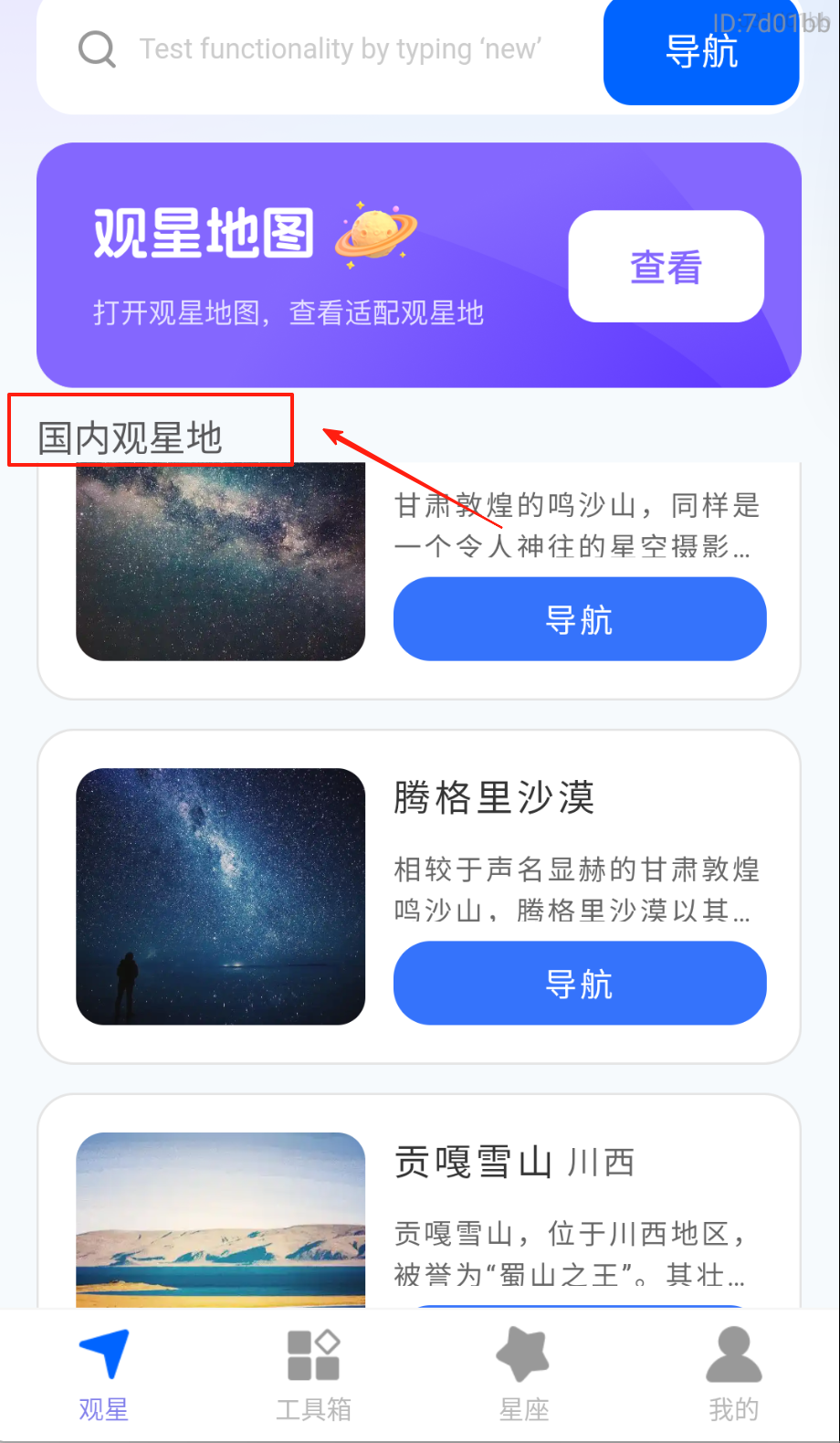 3、查看国内观星地,包括阿里暗夜公园(西藏)、敦煌鸣沙山(甘肃)和腾格里沙漠等。
