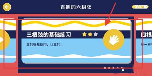 3、在吉他课程列表,可以选择“三根弦的基础练习”等课程,可点击进入学习吉他基础内容。