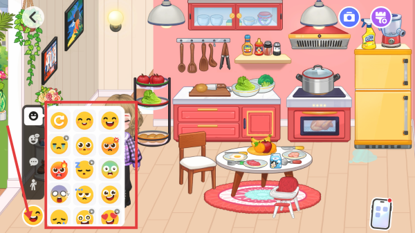 3、利用界面中的表情互动功能,与场景内角色或元素进行互动,丰富游戏体验。持续探索场景中的各种物品和功能,解锁更多有趣内容。