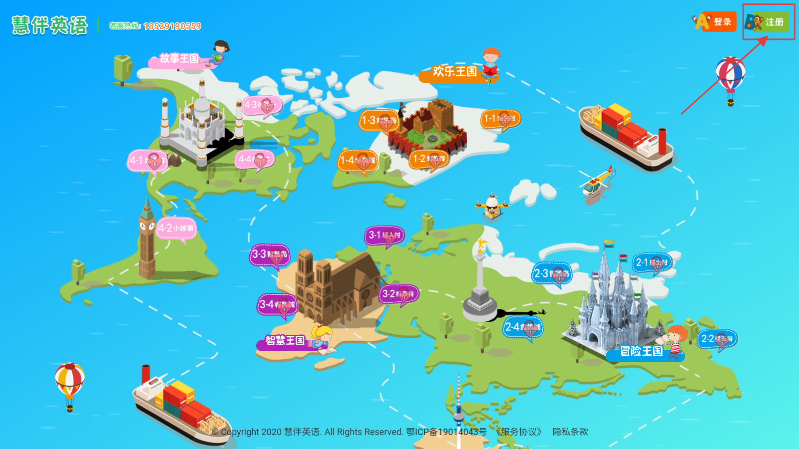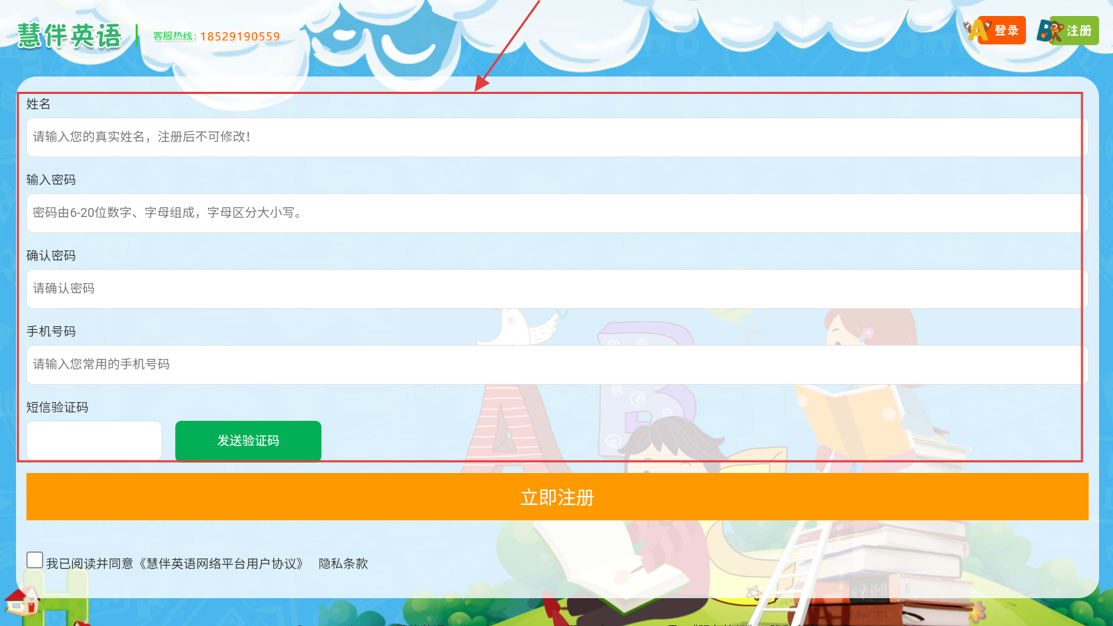 1、打开“慧伴英语”平台,点击右上角【注册】按钮,进入注册页面。