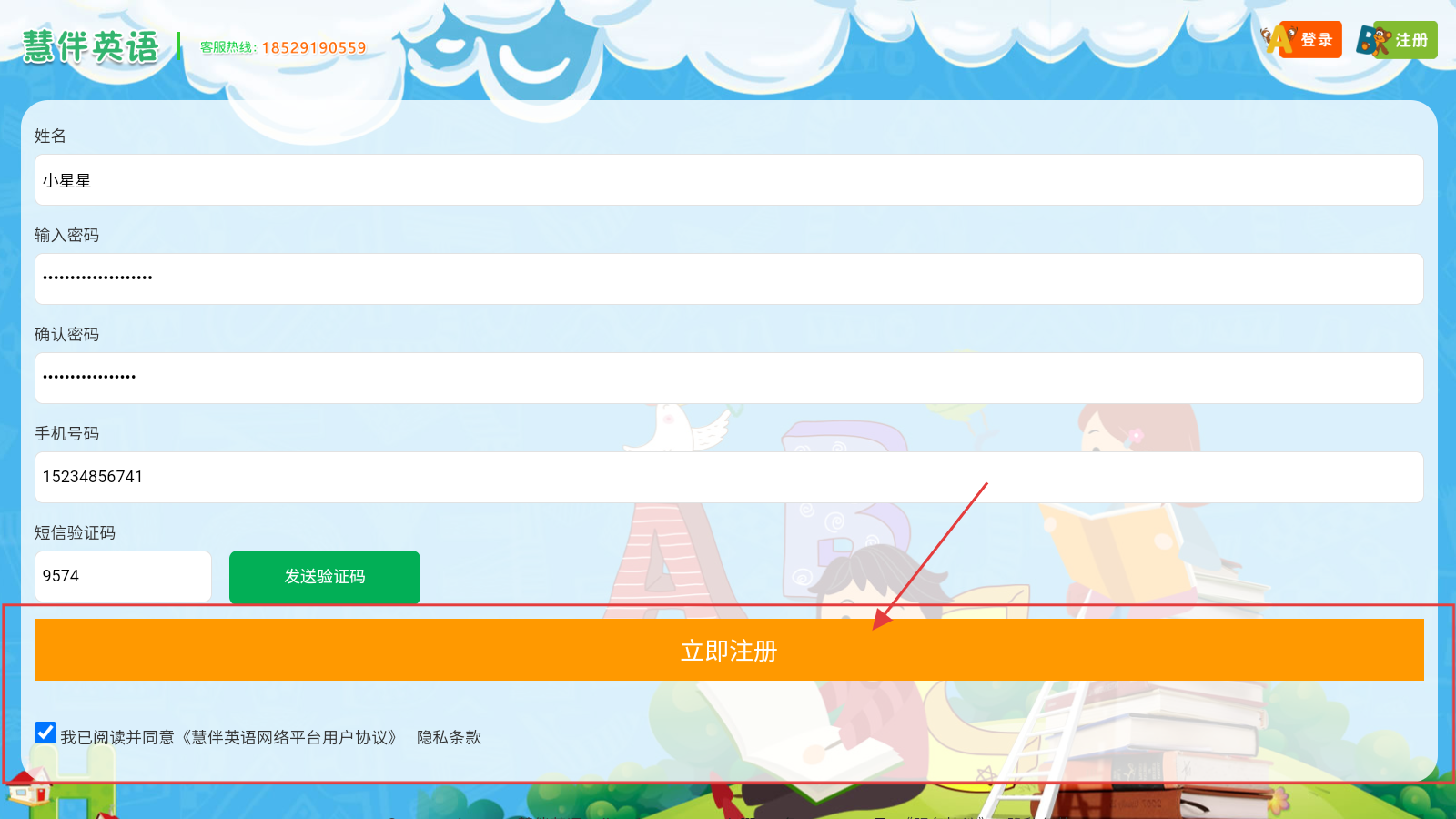 3、勾选同意用户协议,点击【立即注册】,完成账号注册。