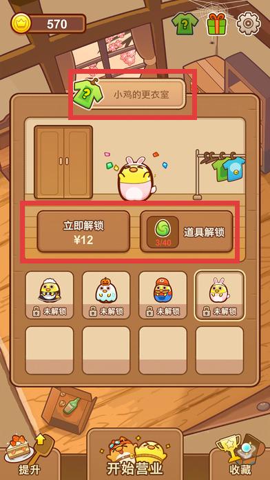 3、积累一定金币后,可考虑解锁“小鸡的更衣室”功能,通过立即解锁或道具解锁,为角色换装,增添游戏乐趣,持续提升经营收益。