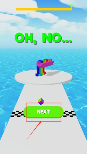 3、继续游戏:如果角色掉入水中,点击“NEXT”按钮重新开始当前关卡。