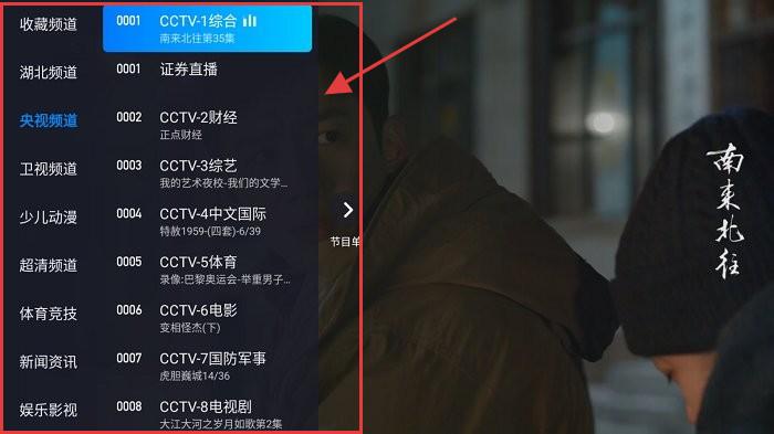 3、设置完成,观看对应频道播放的内容(如【《南来北往》】),浏览剧集画面。