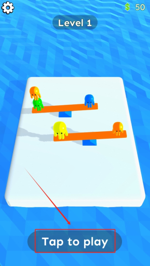 1、开始游戏:点击屏幕下方的“Tap to play”按钮,进入游戏第一关。