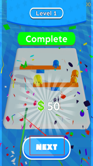 3、完成关卡:成功保持木板平衡后,点击“NEXT”按钮进入下一关或完成游戏。