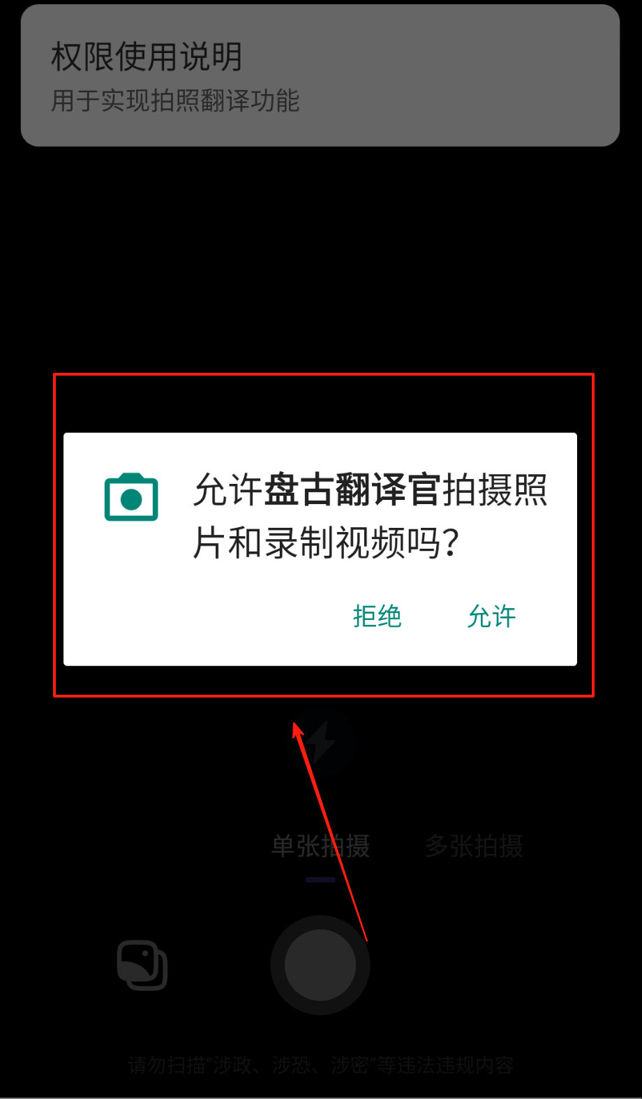 允许应用程序使用相机拍照,这样应用程序可随时收集进入相机镜头的图像。
