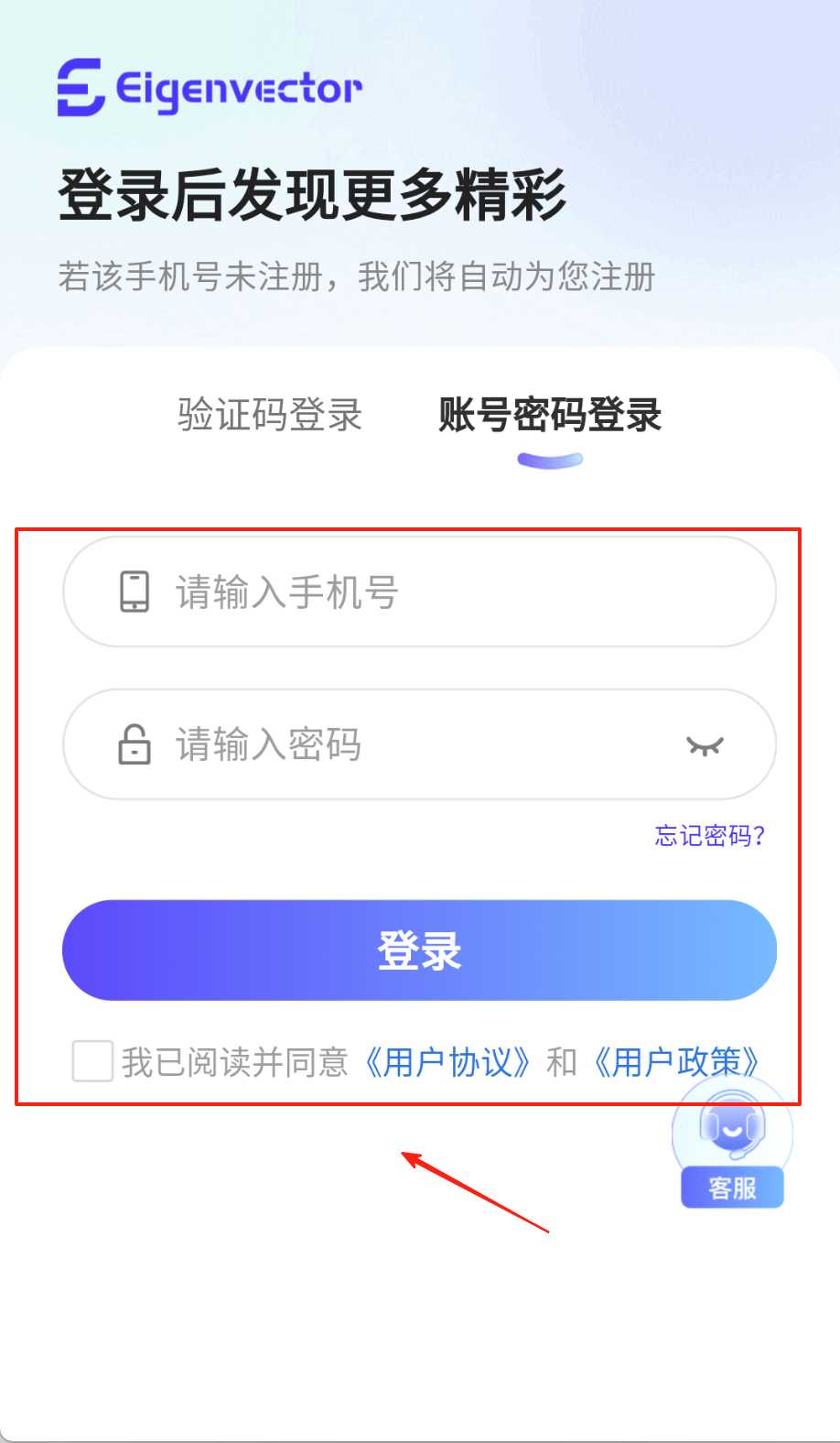 2、切密码登录界面填手机号和密码,别忘勾协议同意框点蓝色登录键,忘记密码点红字跳转重置啦。