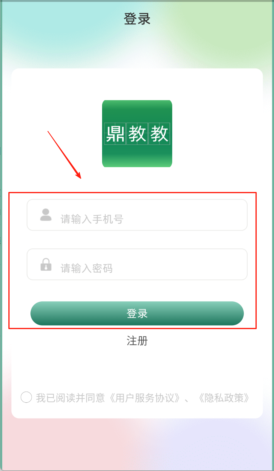 2、登录页填手机号密码后是关键步,先勾协议同意框再点绿色登录键,没账号点底部红字去注册哦。